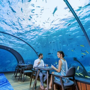 Features include a spell binding Aquarium under water restaurant located 5 metres below the surface, a tranquil lagoon, a fantastic house reef and an outstanding spa. The resort is restricted to guest aged 15 years and over.Maldives Holidays